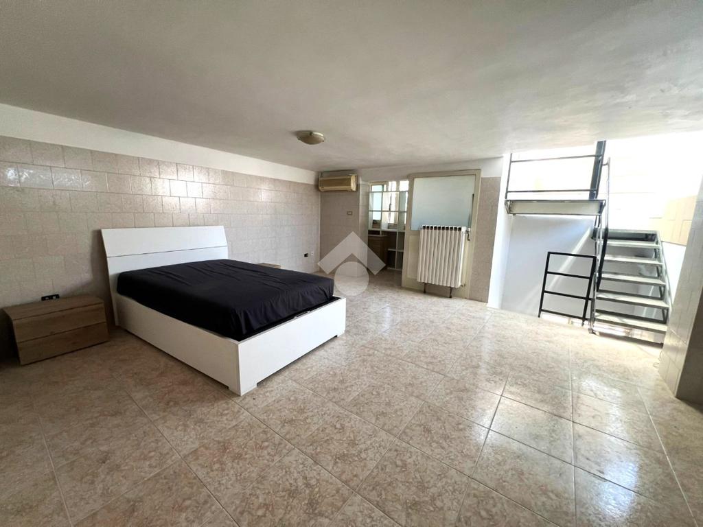 Salendo al primo piano, troviamo un'altra camere da letto e un ulteriore ambiente che può essere adibito a cucina o bagno secondo le necessità. Vicino alla camera troviamo una scala che conduce a un ampio terrazzo a livello, ideale come spazio esterno vivibile.
